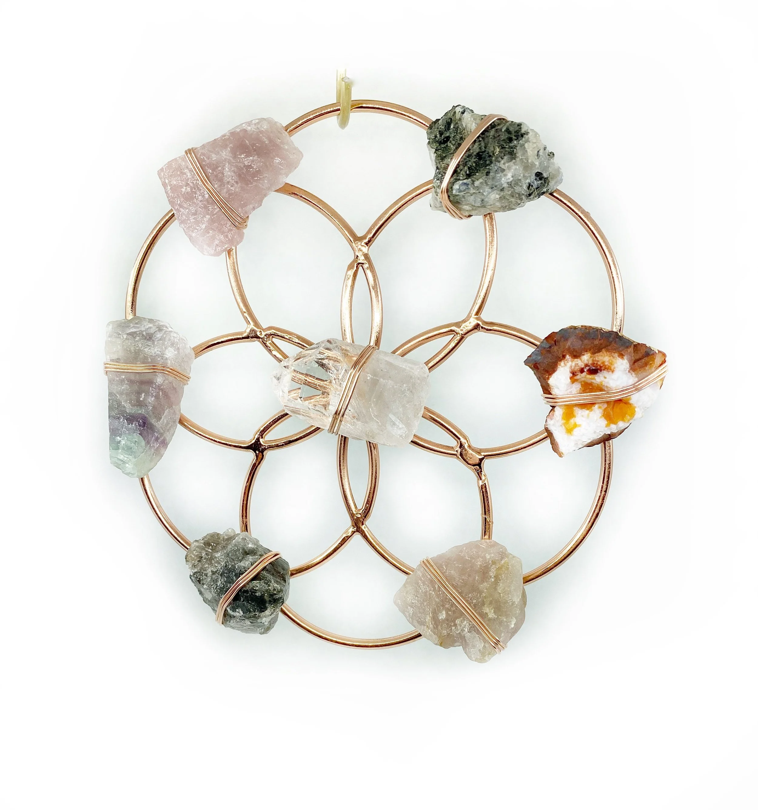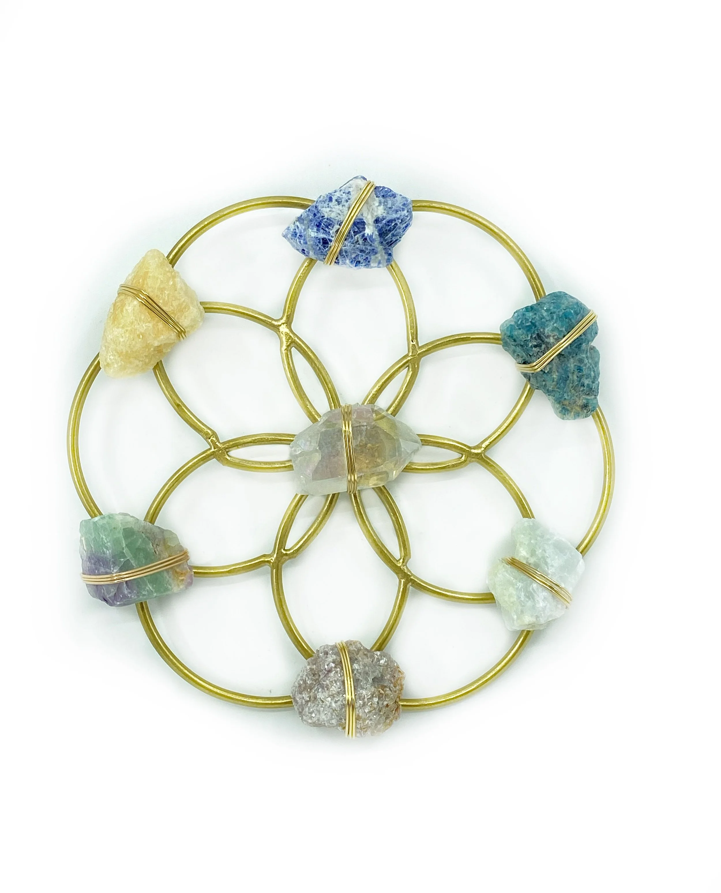 Harness the power and healing energy of crystals with these lovely grids. Crystal gridding is a powerful tool to manifest your dreams into reality. An abundance of stones amplifies the energy of each crystal further charged by being placed in a sacred geometric flower like pattern formed derived from the flower of life. The flower of life is an ancient symbol we represented in a fresh modern way.